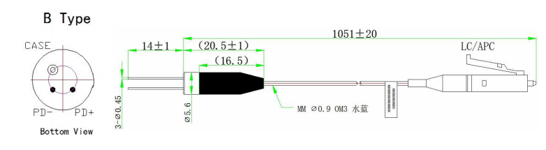 Điốt quang đuôi lợn InGaAs kết hợp với sợi quang đa mode, có đường kính lõi 50µm hoặc 62,5µm có thể lựa chọn và phạm vi bước sóng phát hiện là 900-1700nm.