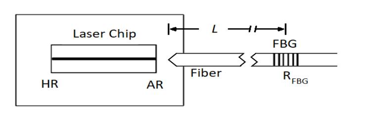 Constructing an external cavity laser using a Fiber Bragg Grating (FBG) is a cost-effective solution to enhance the performance of low-cost lasers. Như được hiển thị trong Hình 1, FBG được ghi trong đuôi sợi, thường nằm gần chip phát ra, tạo thành tia laser khoang bên ngoài.